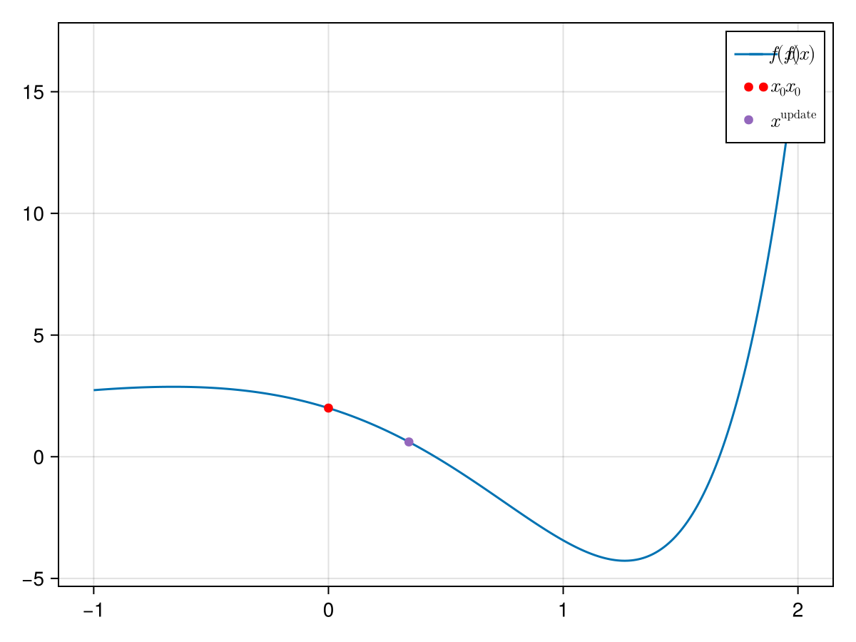 sdc(α₁)trueWe now move the original $x$ in the Newton direction with step length $\alpha_1$ by using compute_new_iterate!: